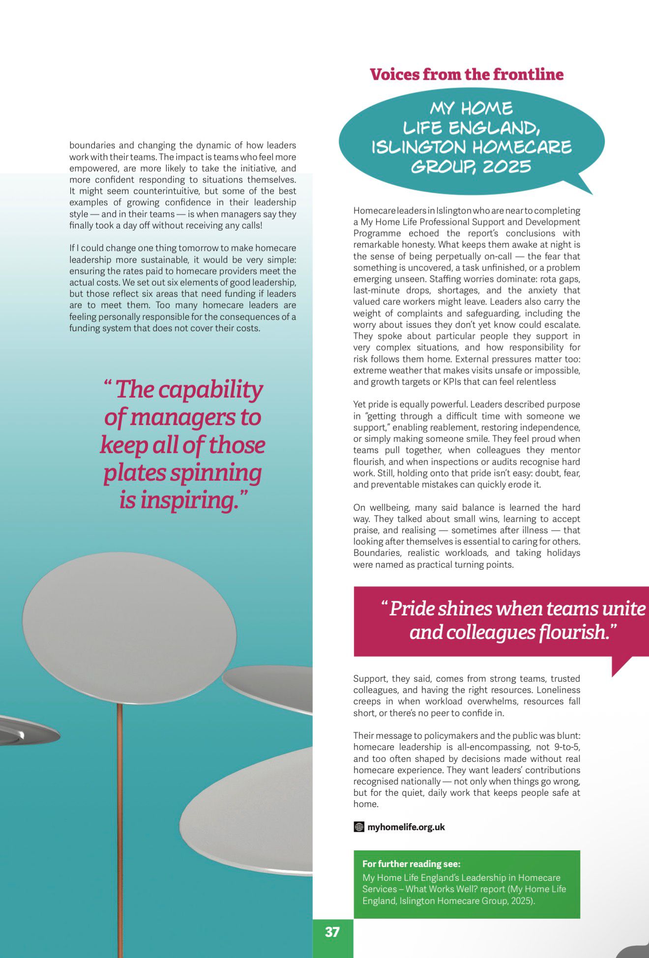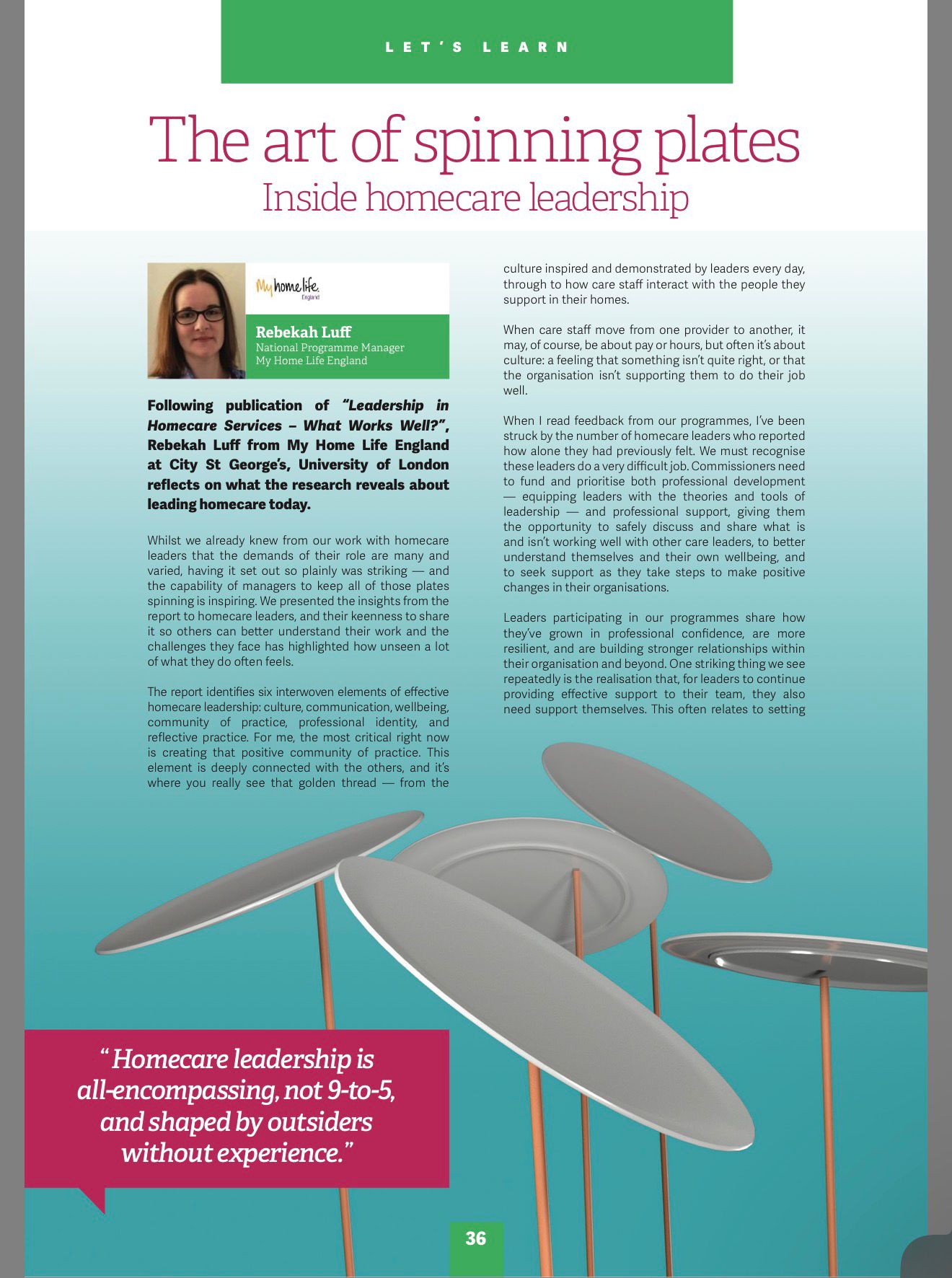 The programme also created opportunities for leaders to use their voices beyond the room. As part of the later workshops, participants contributed their insights to an article published in Care Talk magazine, sharing real perspectives from the frontline of care.